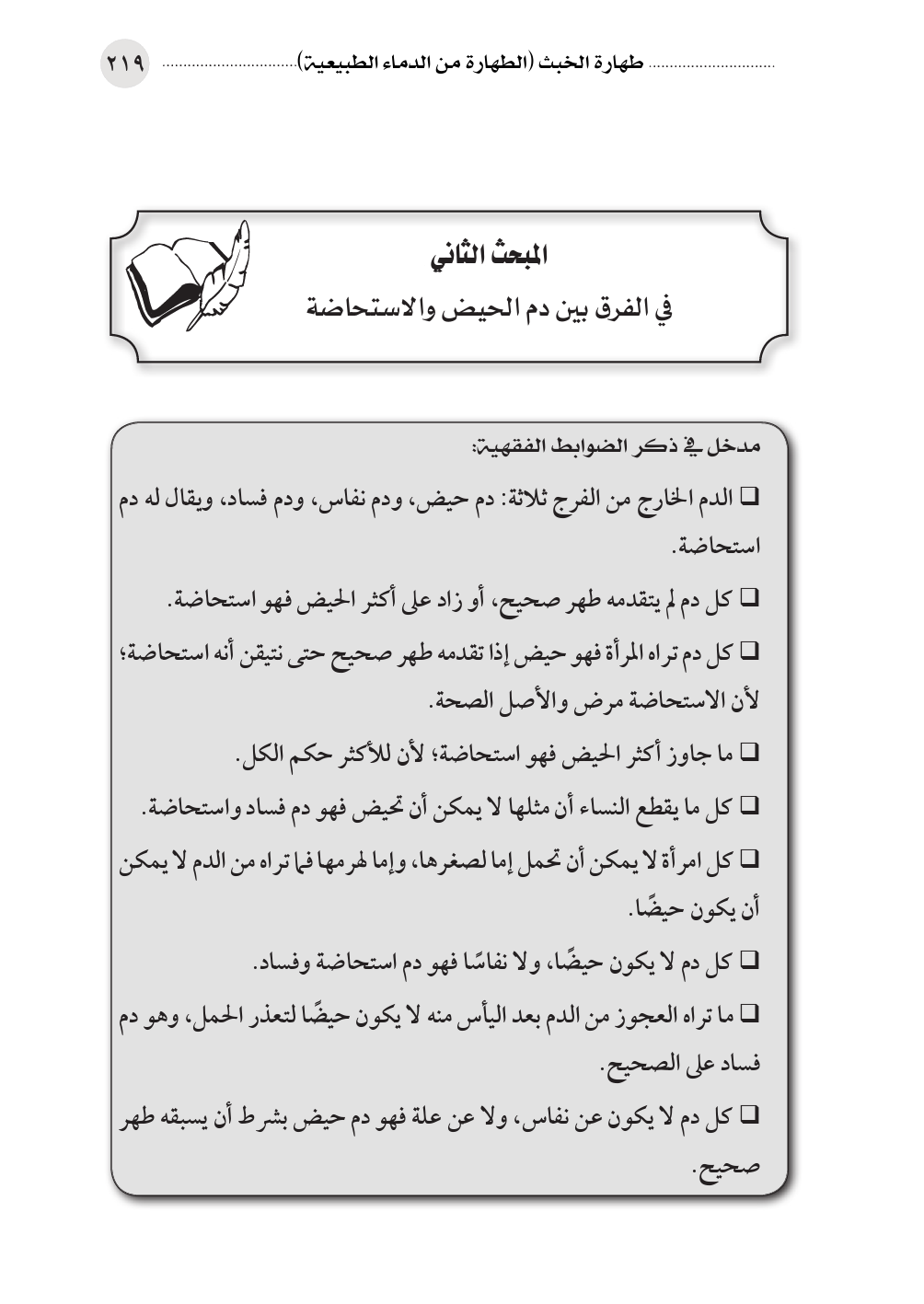 المبحث الثاني في الفرق بين دم الحيض والاستحاضة