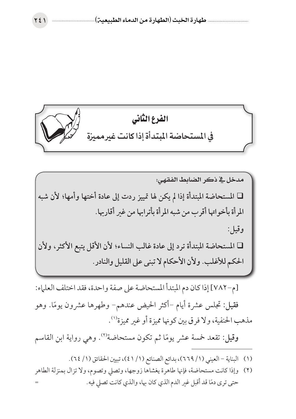 الفرع الثاني في المستحاضة المبتدأة إذا كانت غير مميزة
