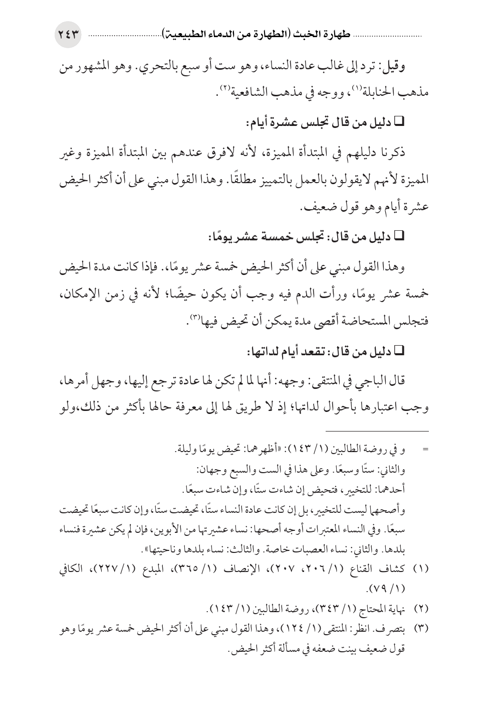 (¬٣) بتصرف. انظر: المنتقى (١/ ١٢٤)، وهذا القول مبني على أن أكثر الحيض خمسة عشر يومًا وهو قول ضعيف بينت ضعفه في مسألة أكثر الحيض.