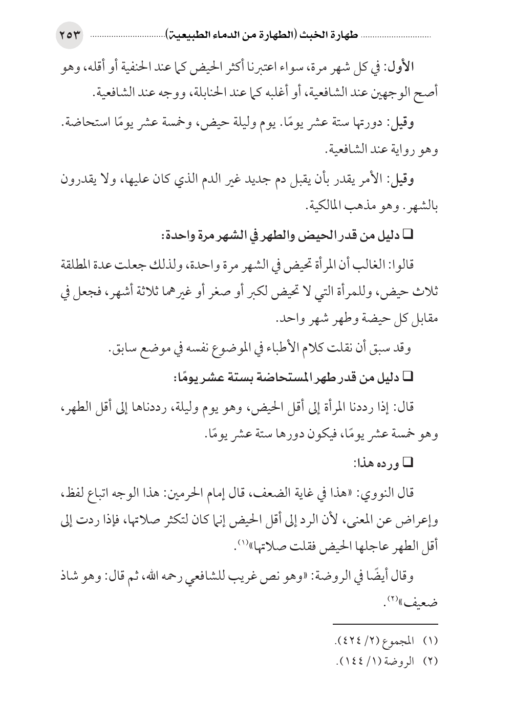 • دليل من قدر الحيض والطهر في الشهر مرة واحدة: