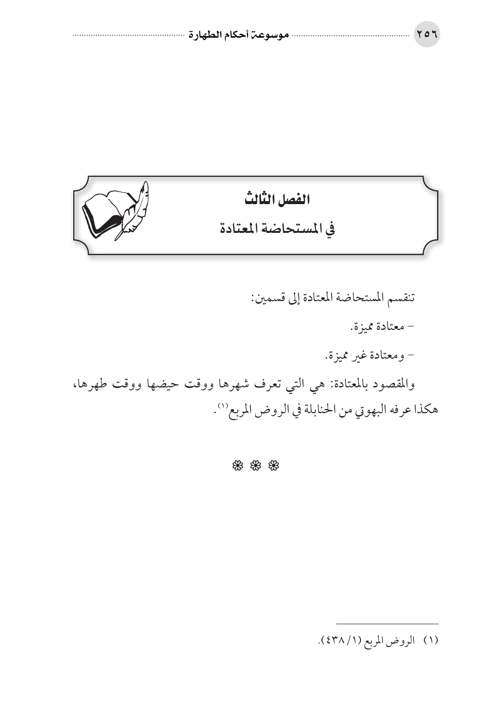 والمقصود بالمعتادة: هي التي تعرف شهرها ووقت حيضها ووقت طهرها، هكذا عرفه البهوتي من الحنابلة في الروض المربع (¬١).