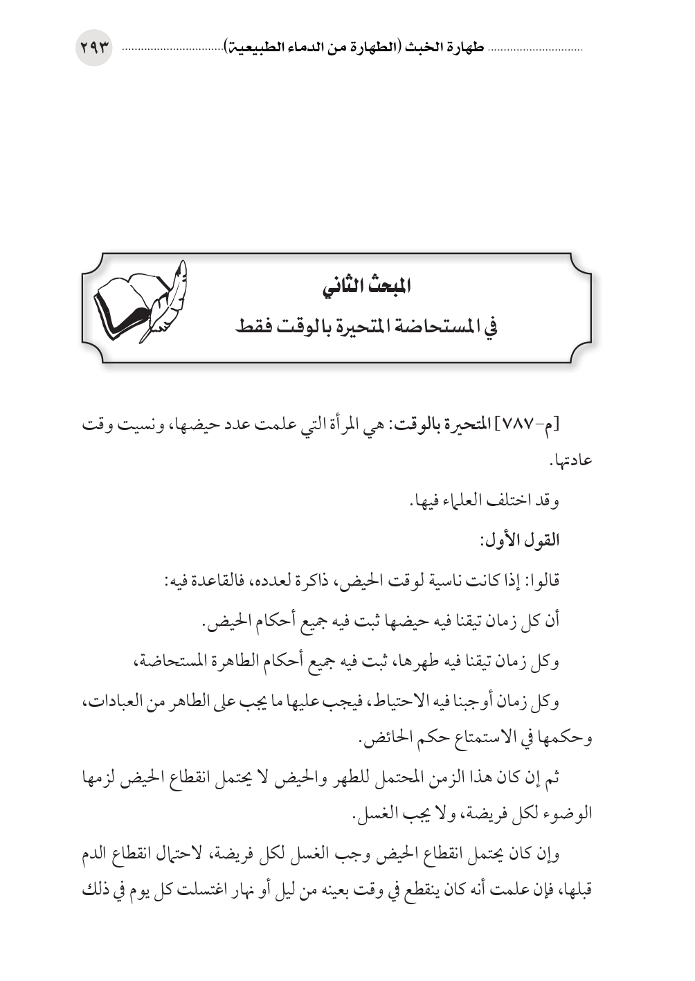 المبحث الثاني في المستحاضة المتحيرة بالوقت فقط