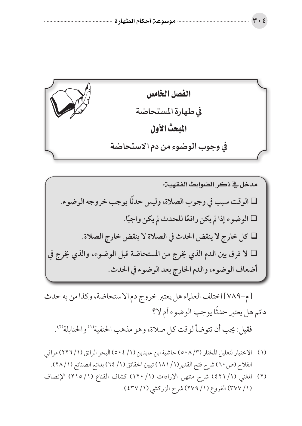 المبحث الأول في وجوب الوضوء من دم الاستحاضة