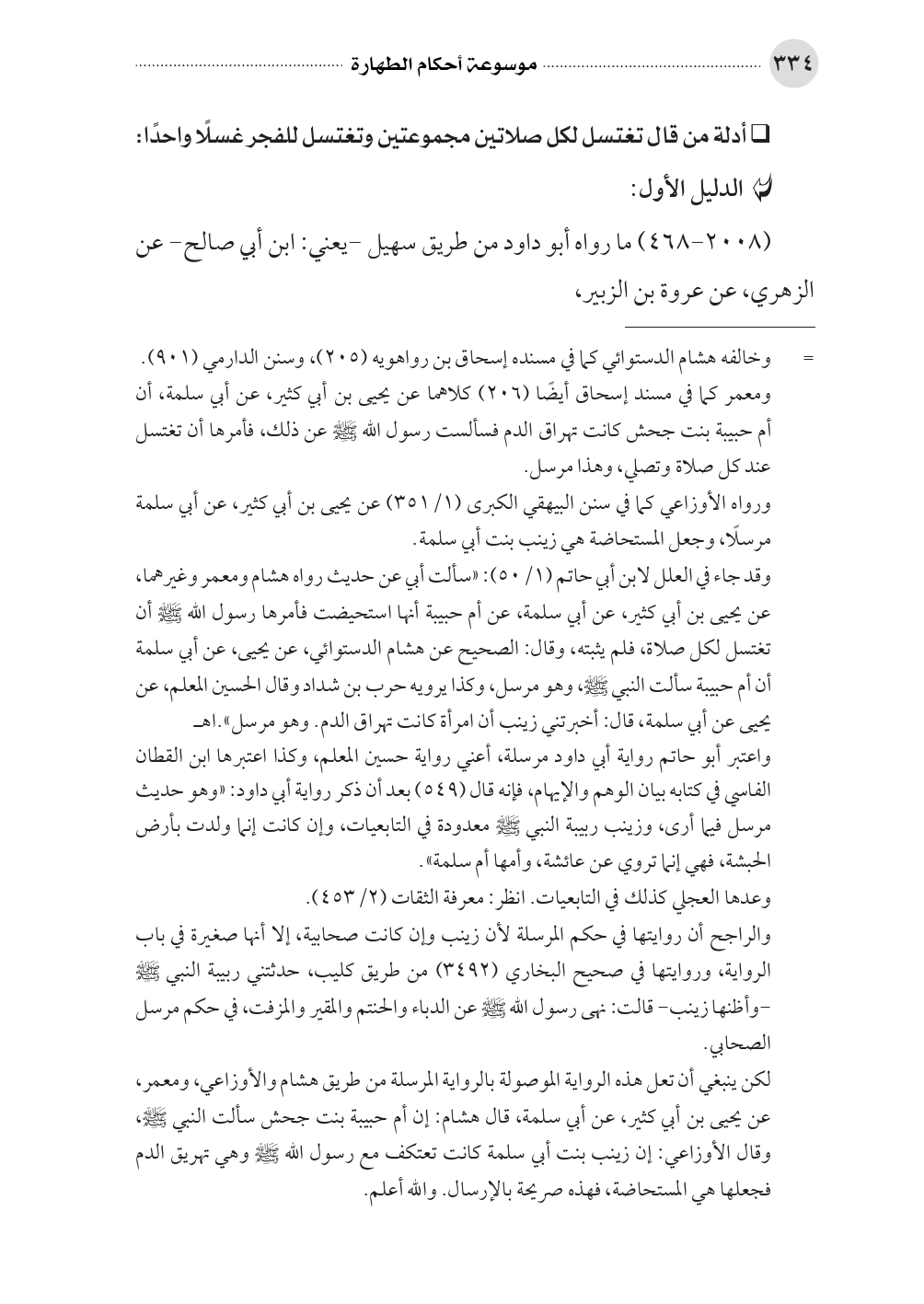 ورواه الأوزاعي كما في سنن البيهقي الكبرى (١/ ٣٥١) عن يحيى بن أبي كثير، عن أبي سلمة مرسلًا، وجعل المستحاضة هي زينب بنت أبي سلمة.