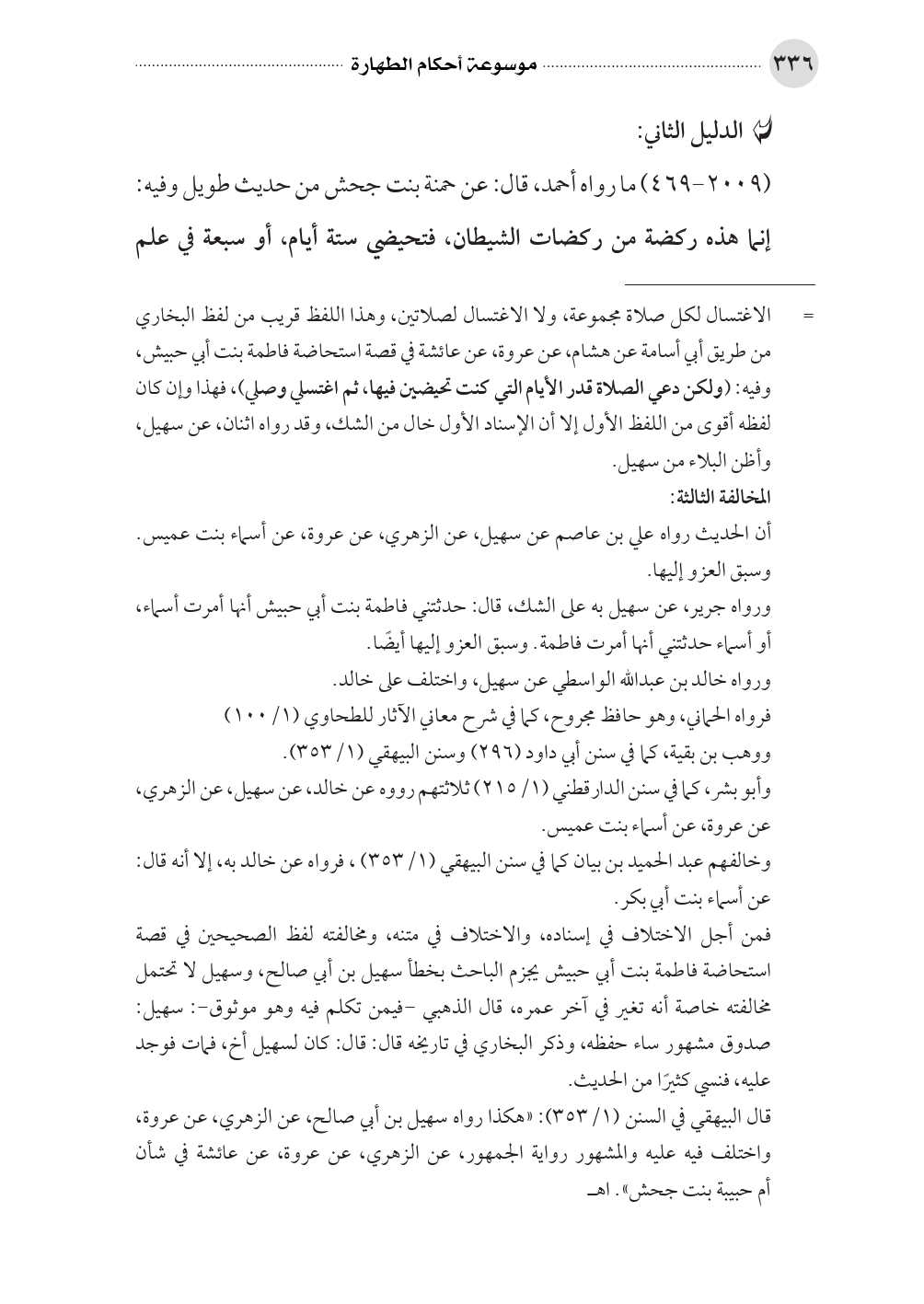(٢٠٠٩ - ٤٦٩) ما رواه أحمد، قال: عن حمنة بنت جحش من حديث طويل وفيه: