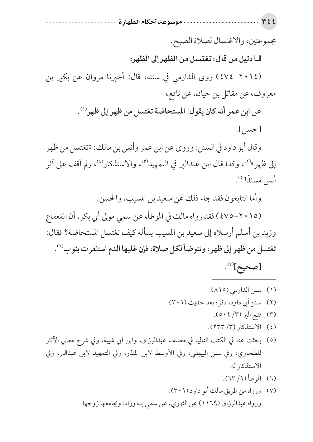 (٢٠١٥ - ٤٧٥) فقد رواه مالك في الموطأ، عن سمي مولى أبي بكر، أن القعقاع وزيد بن أسلم أرسلاه إلى سعيد بن المسيب يسأله كيف تغتسل المستحاضة؟ فقال: تغتسل من ظهر إلى ظهر، وتتوضأ لكل صلاة، فإن غلبها الدم استثفرت بثوب (¬٦).