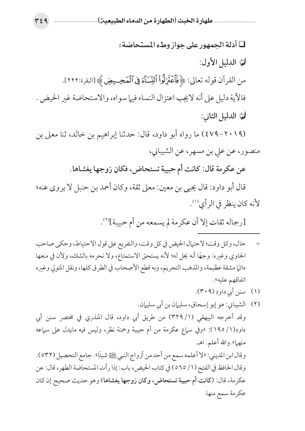 • أدلة الجمهور على جواز وطء المستحاضة: