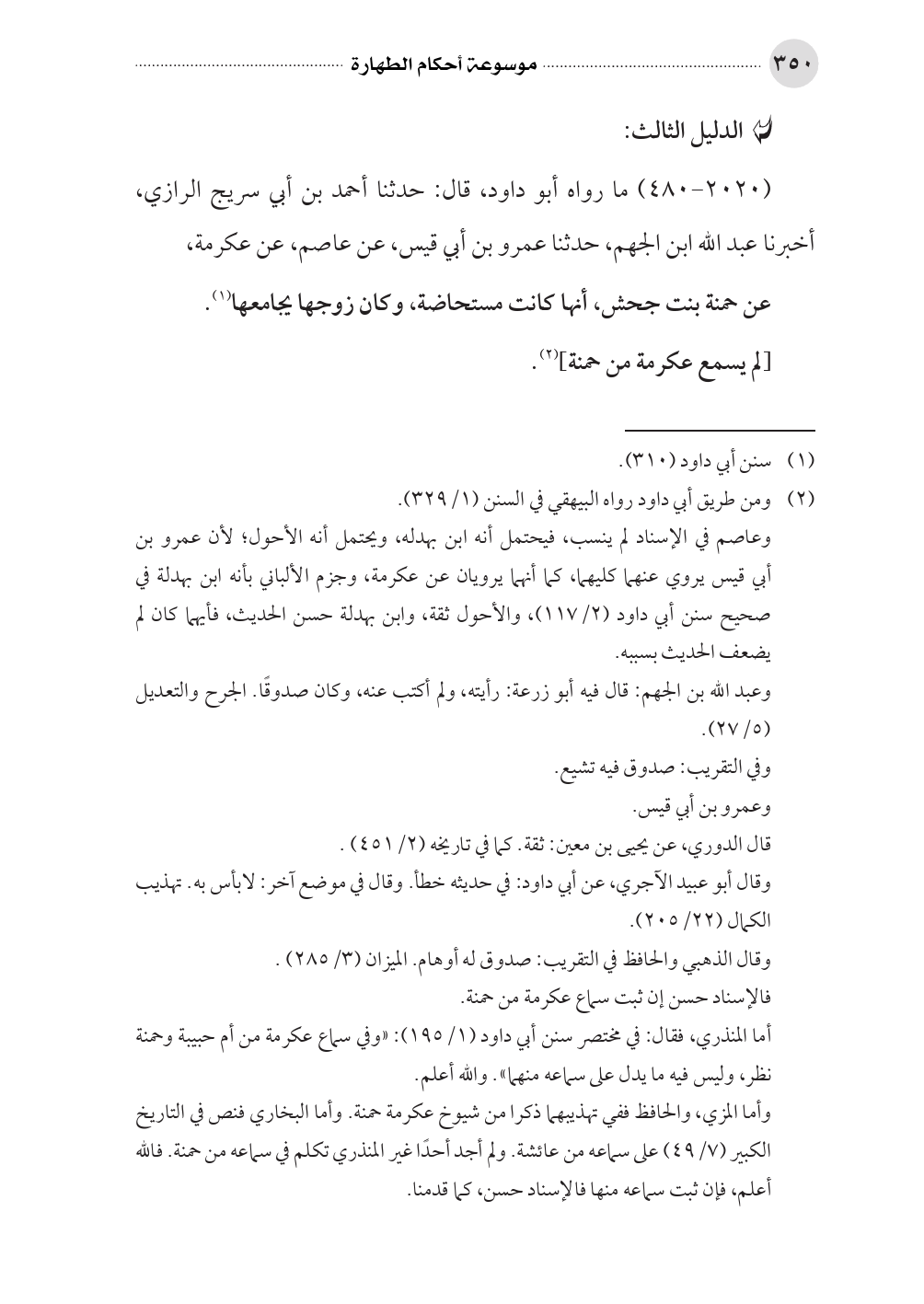 (٢٠٢٠ - ٤٨٠) ما رواه أبو داود، قال: حدثنا أحمد بن أبي سريج الرازي، أخبرنا عبد الله ابن الجهم، حدثنا عمرو بن أبي قيس، عن عاصم، عن عكرمة،