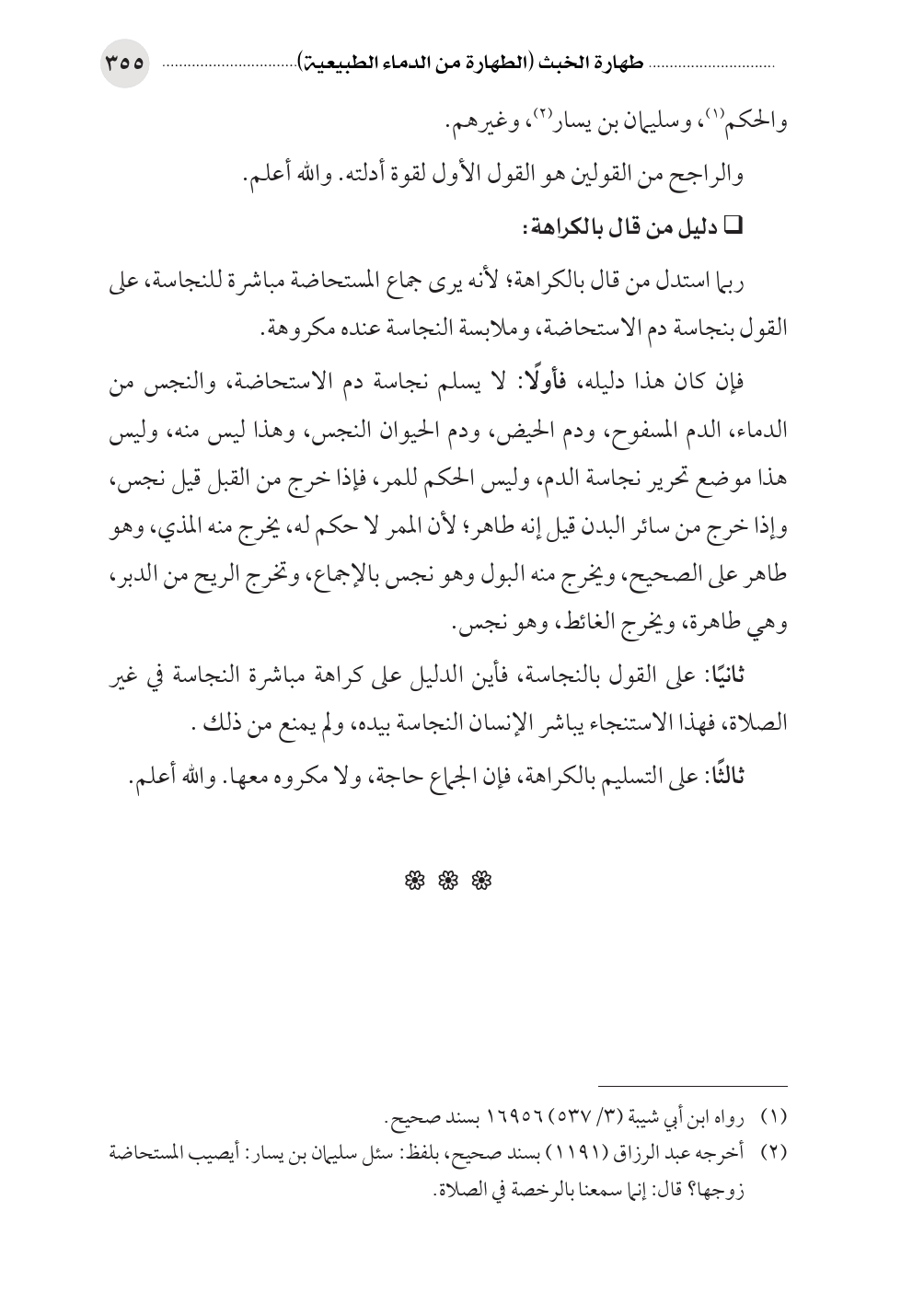 (¬٢) أخرجه عبد الرزاق (١١٩١) بسند صحيح، بلفظ: سئل سليمان بن يسار: أيصيب المستحاضة زوجها؟ قال: إنما سمعنا بالرخصة في الصلاة.