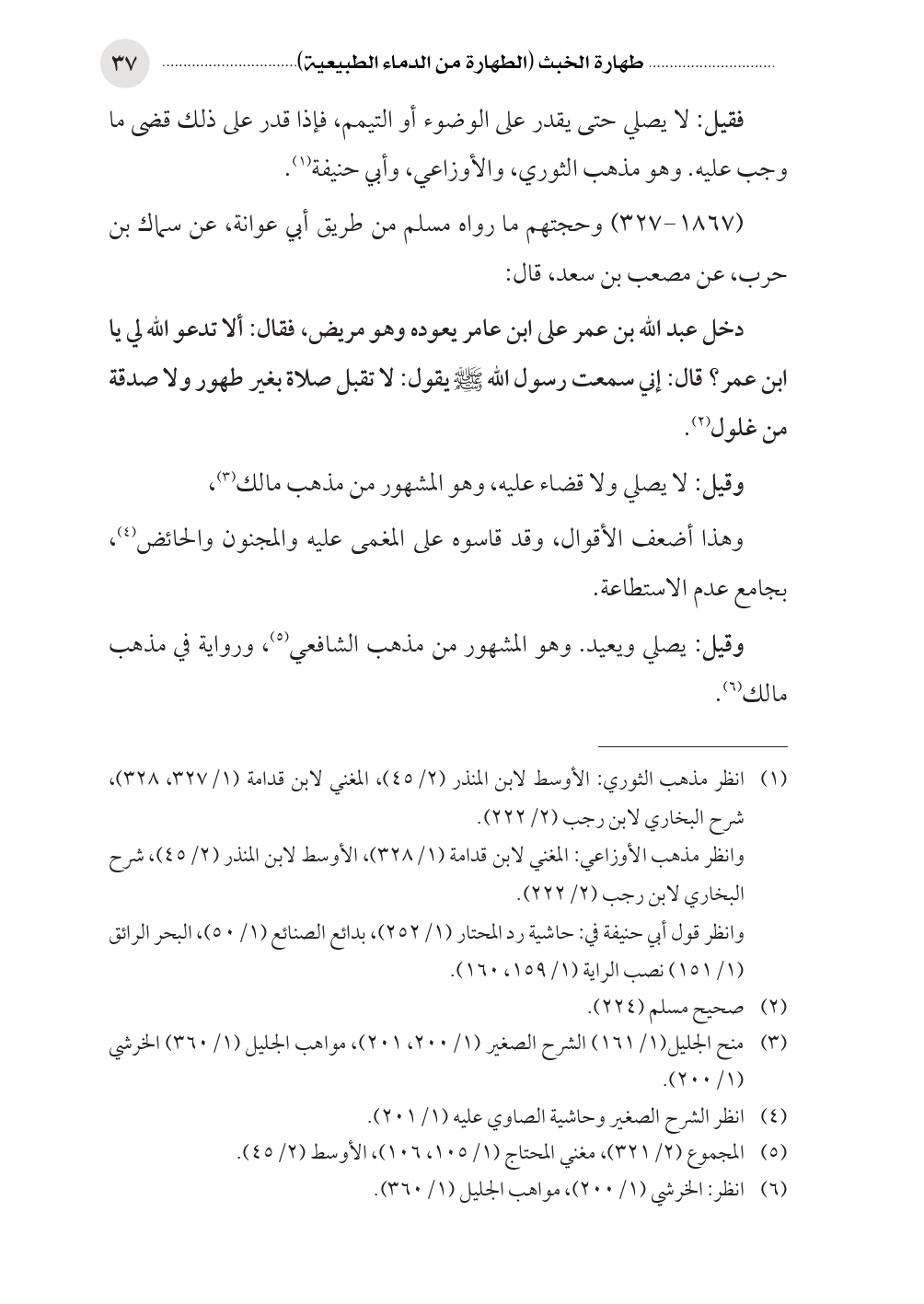 (¬٦) انظر: الخرشي (١/ ٢٠٠)، مواهب الجليل (١/ ٣٦٠).
