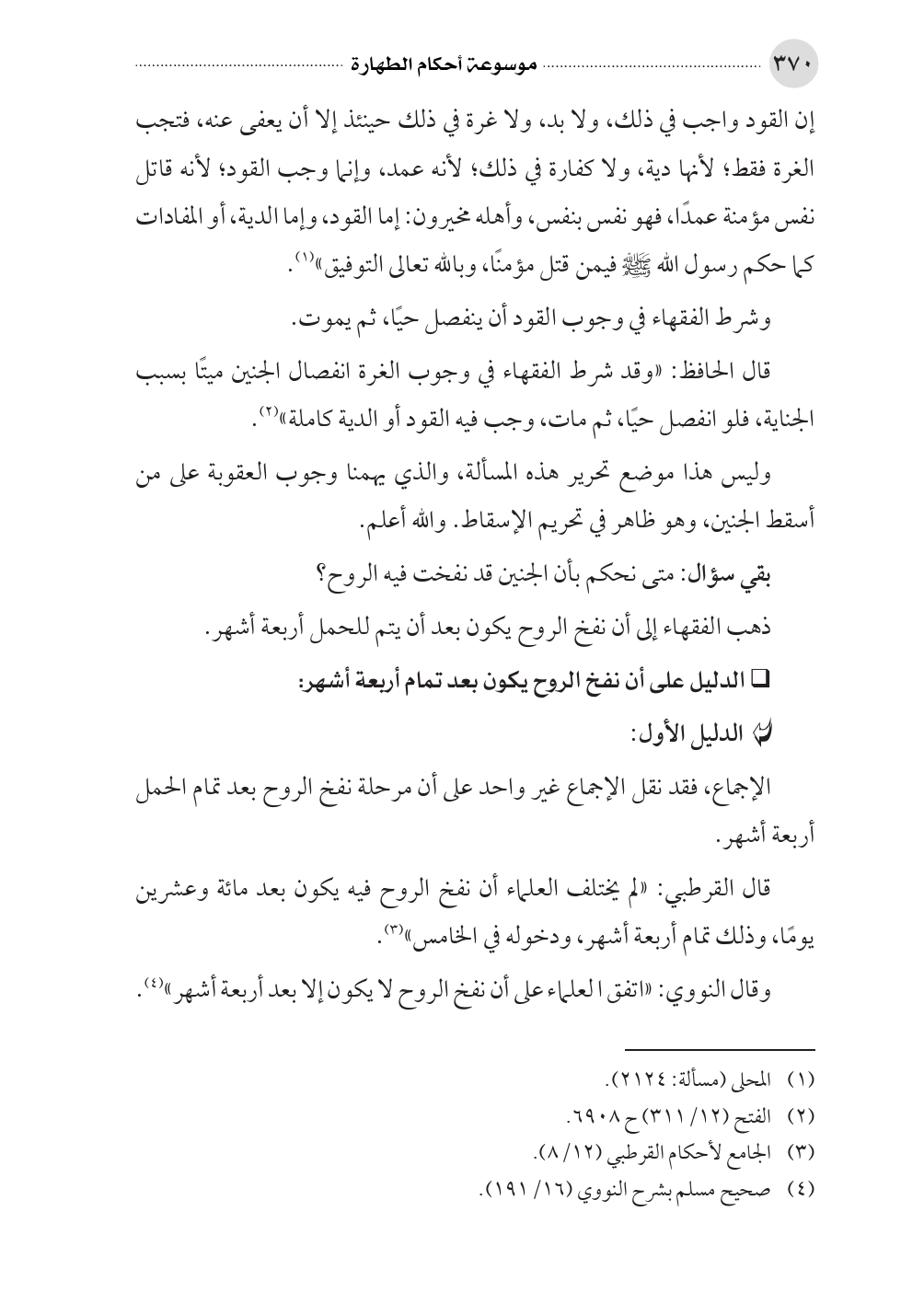 وقال النووي: «اتفق العلماء على أن نفخ الروح لا يكون إلا بعد أربعة أشهر» (¬٤).