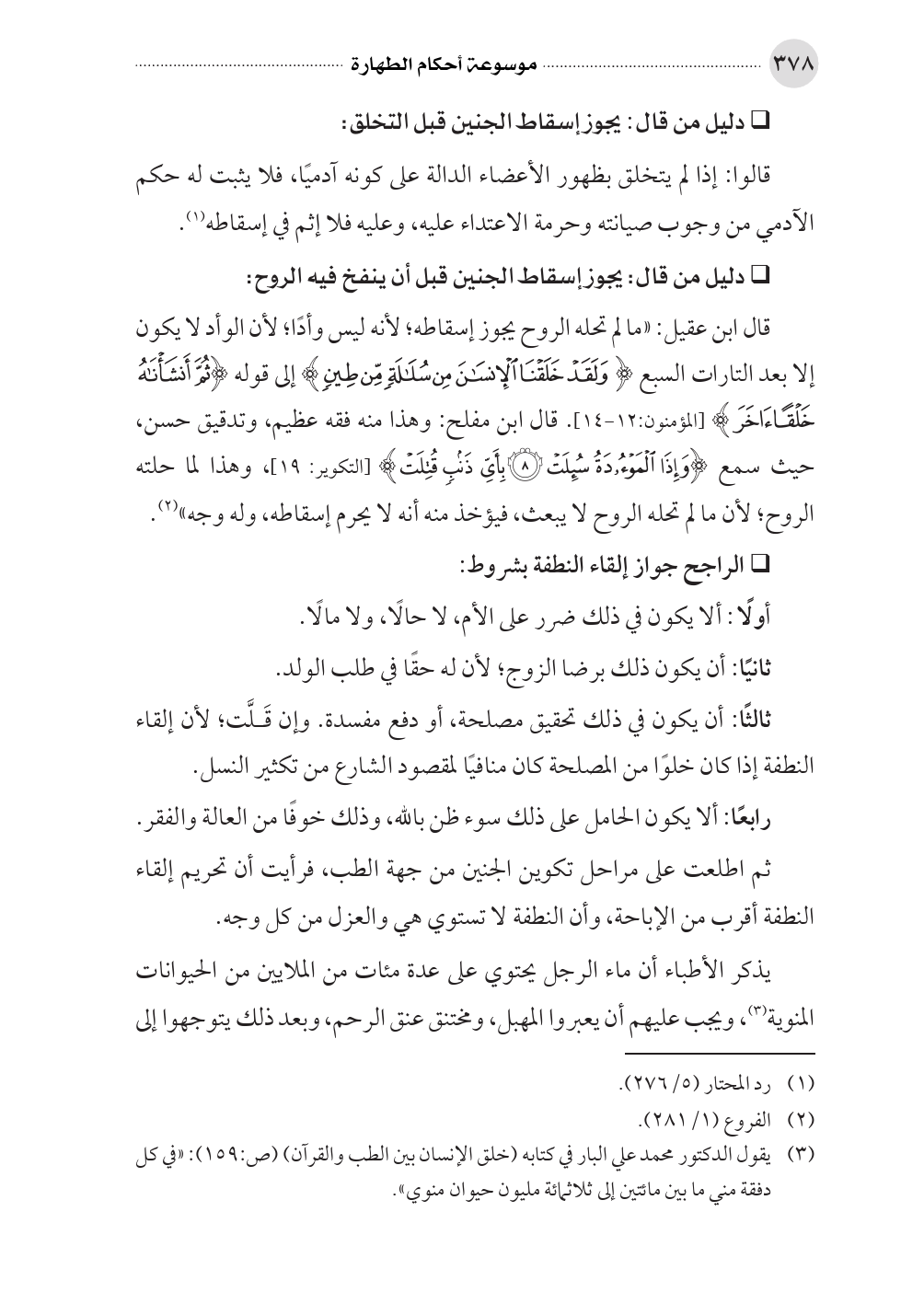ثم اطلعت على مراحل تكوين الجنين من جهة الطب، فرأيت أن تحريم إلقاء النطفة أقرب من الإباحة، وأن النطفة لا تستوي هي والعزل من كل وجه.