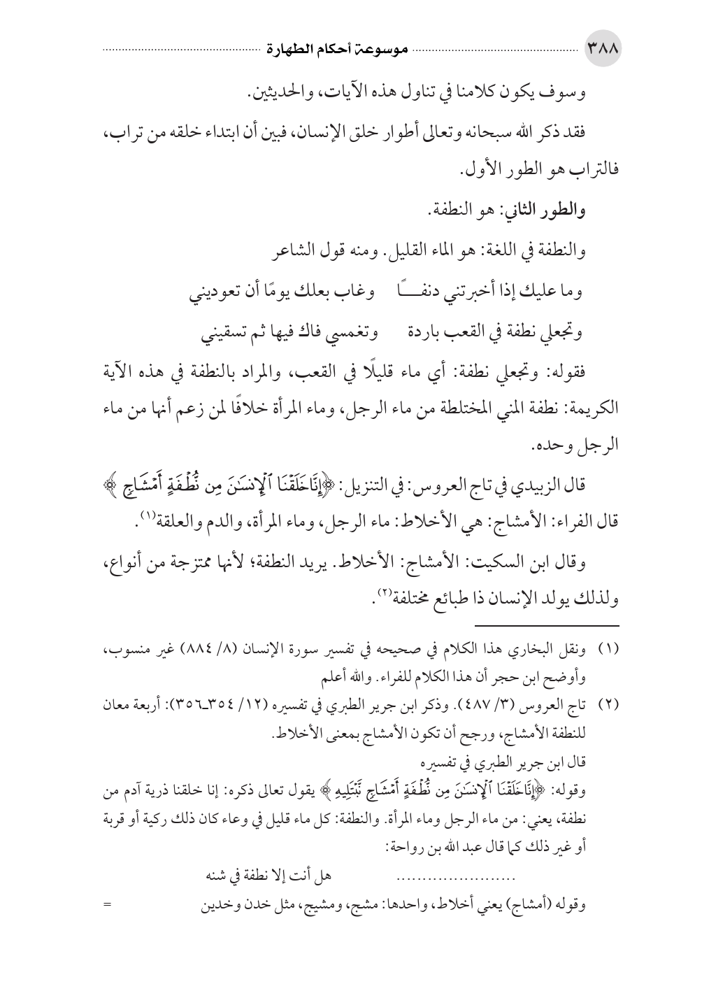 (¬٢) تاج العروس (٣/ ٤٨٧). وذكر ابن جرير الطبري في تفسيره (١٢/ ٣٥٤ ـ ٣٥٦): أربعة معان للنطفة الأمشاج، ورجح أن تكون الأمشاج بمعنى الأخلاط.