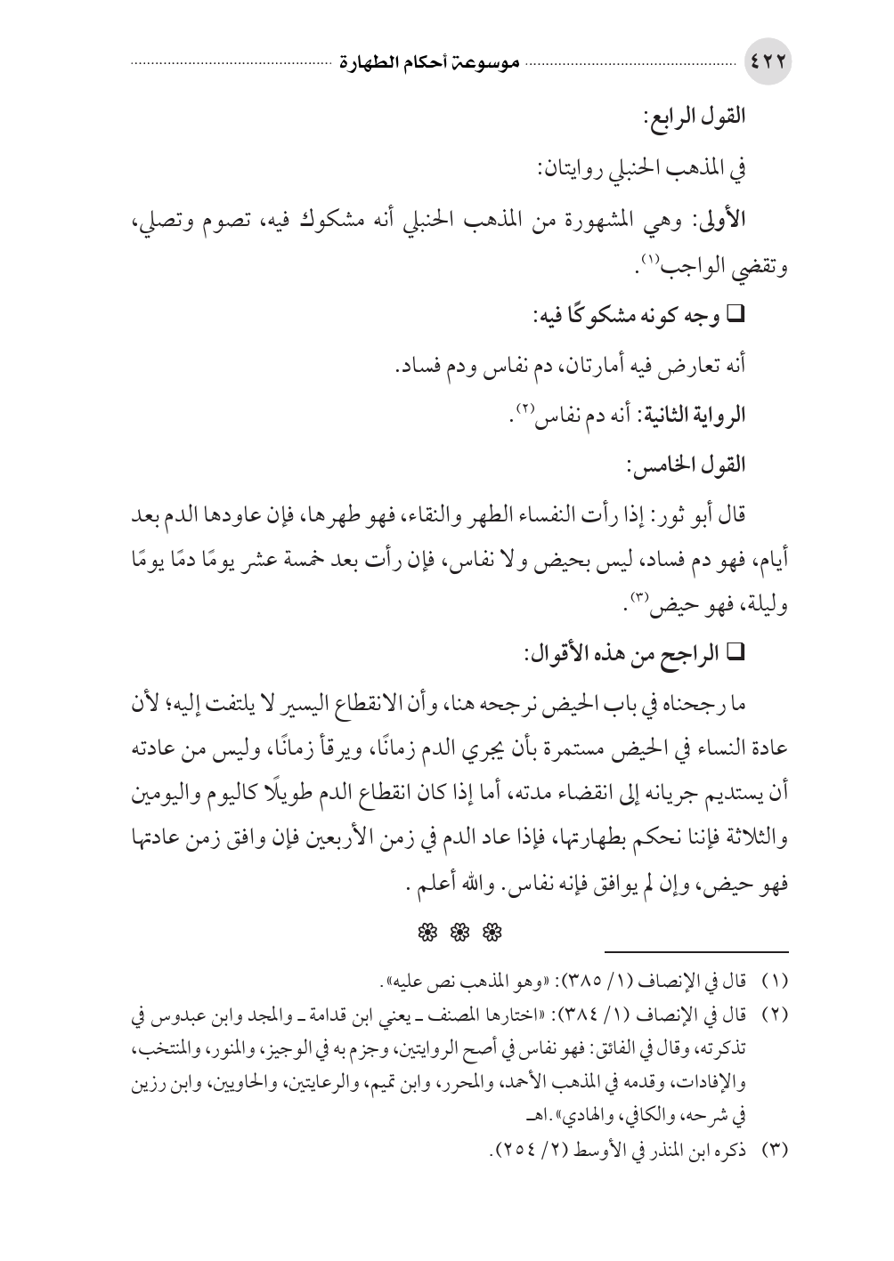 (¬٢) قال في الإنصاف (١/ ٣٨٤): «اختارها المصنف ـ يعني ابن قدامة ـ والمجد وابن عبدوس في تذكرته، وقال في الفائق: فهو نفاس في أصح الروايتين، وجزم به في الوجيز، والمنور، والمنتخب، والإفادات، وقدمه في المذهب الأحمد، والمحرر، وابن تميم، والرعايتين، والحاويين، وابن رزين في شرحه، والكافي، والهادي».اهـ