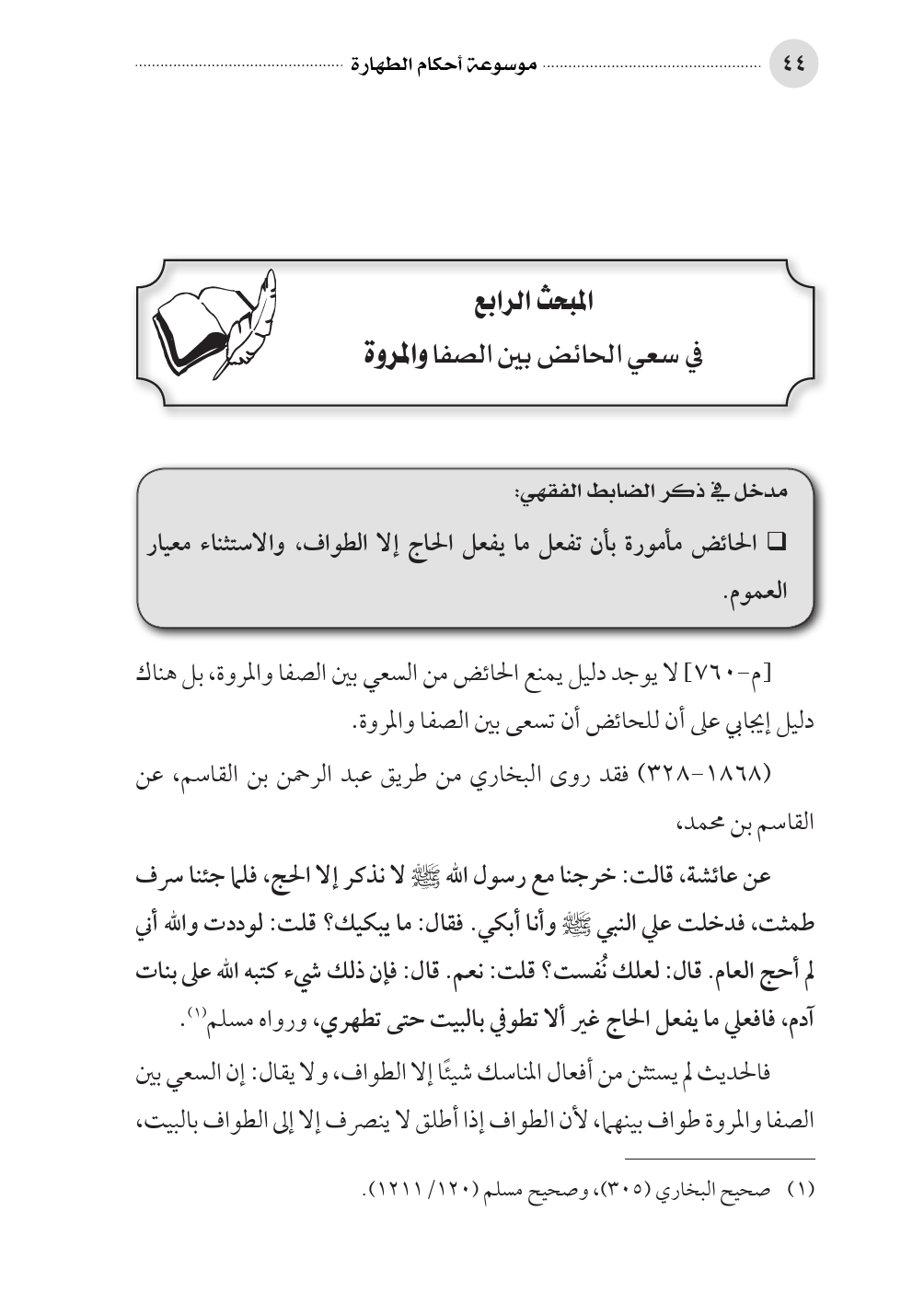 المبحث الرابع في سعي الحائض بين الصفا والمروة
