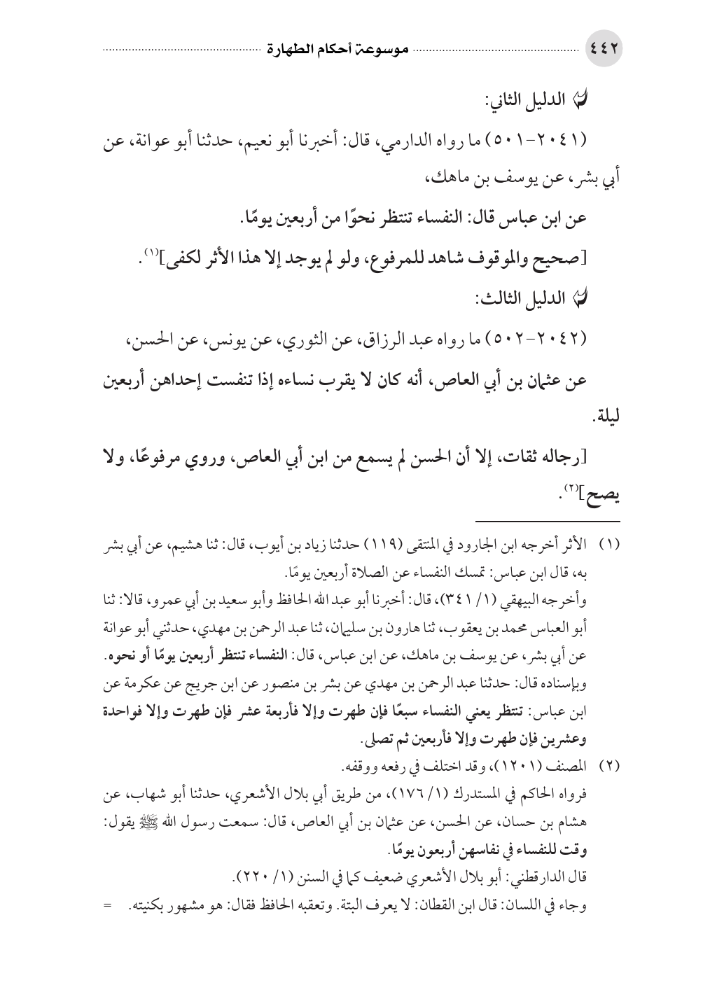 وأخرجه البيهقي (١/ ٣٤١)، قال: أخبرنا أبو عبد الله الحافظ وأبو سعيد بن أبي عمرو، قالا: ثنا أبو العباس محمد بن يعقوب، ثنا هارون بن سليمان، ثنا عبد الرحمن بن مهدي، حدثني أبو عوانة عن أبي بشر، عن يوسف بن ماهك، عن ابن عباس، قال: النفساء تنتظر أربعين يومًا أو نحوه. وبإسناده قال: حدثنا عبد الرحمن بن مهدي عن بشر بن منصور عن ابن جريج عن عكرمة عن ابن عباس: تنتظر يعني النفساء سبعًا فإن طهرت وإلا فأربعة عشر فإن طهرت وإلا فواحدة وعشرين فإن طهرت وإلا فأربعين ثم تصلى.