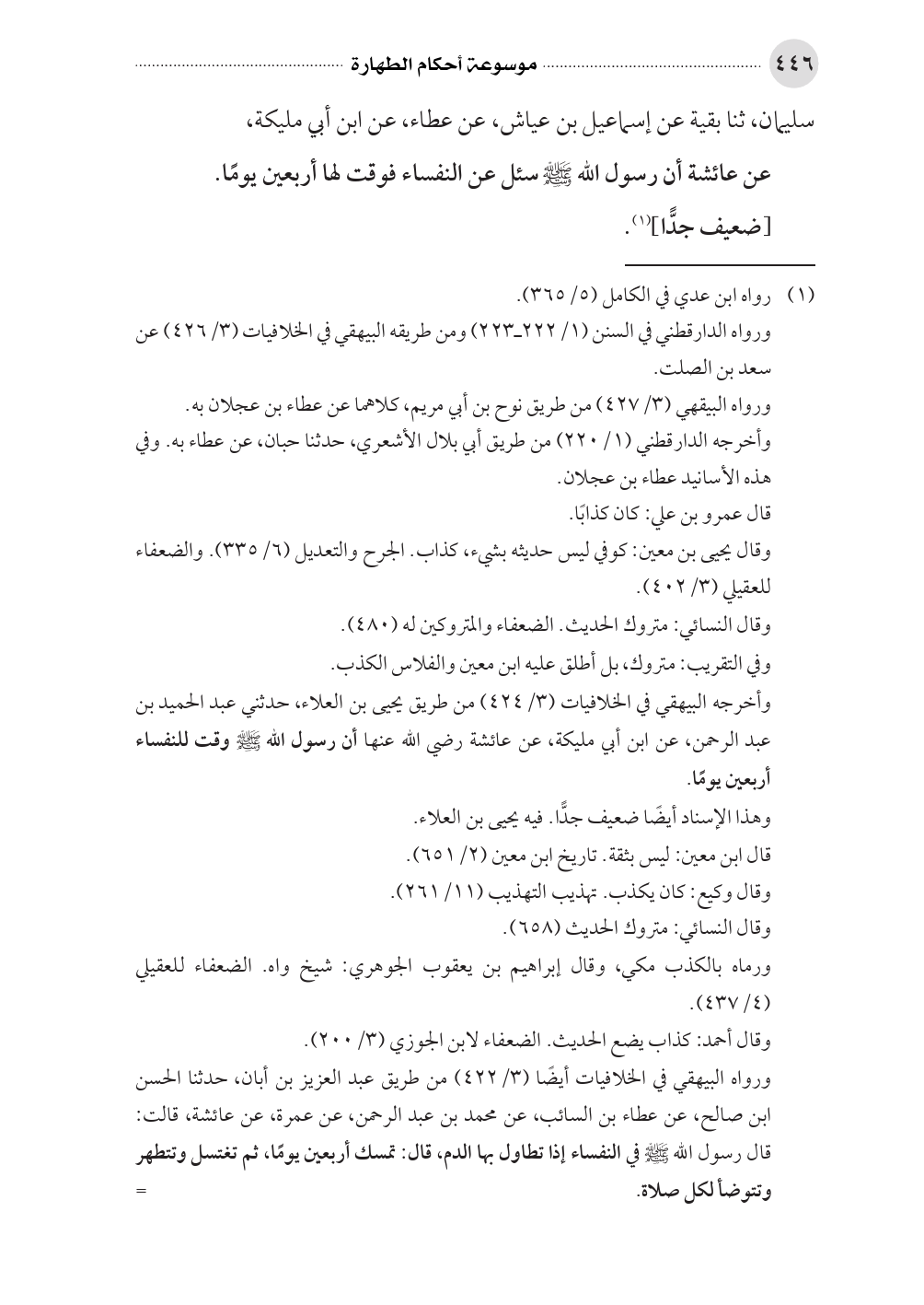 وأخرجه البيهقي في الخلافيات (٣/ ٤٢٤) من طريق يحيى بن العلاء، حدثني عبد الحميد بن عبد الرحمن، عن ابن أبي مليكة، عن عائشة رضي الله عنها أن رسول الله صلى الله عليه وسلم وقت للنفساء أربعين يومًا.