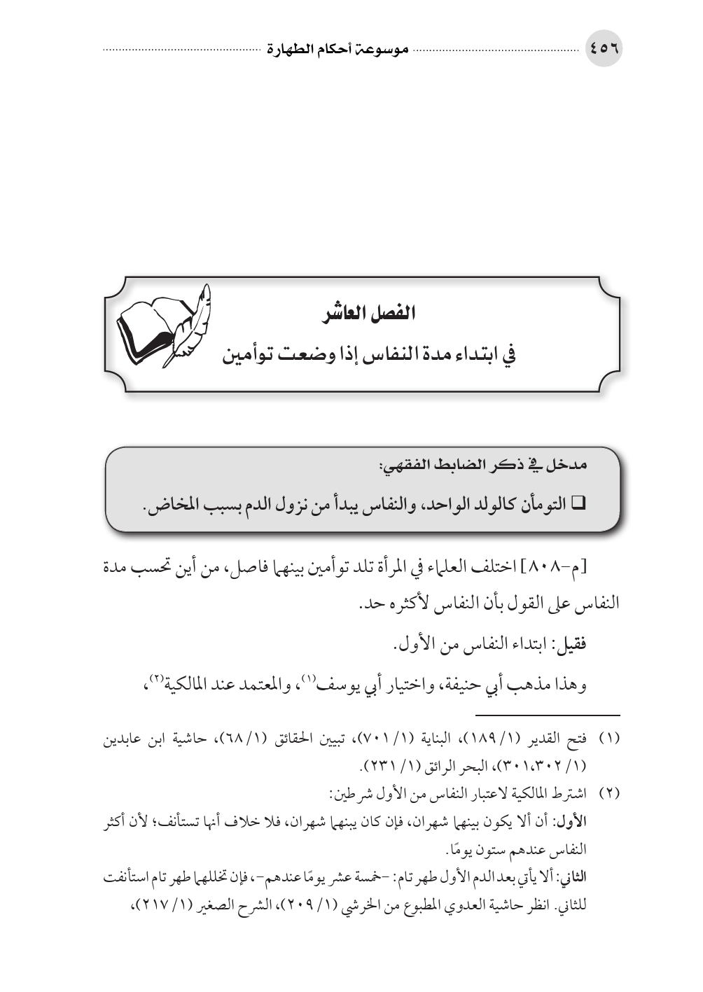 (¬٢) اشترط المالكية لاعتبار النفاس من الأول شرطين: