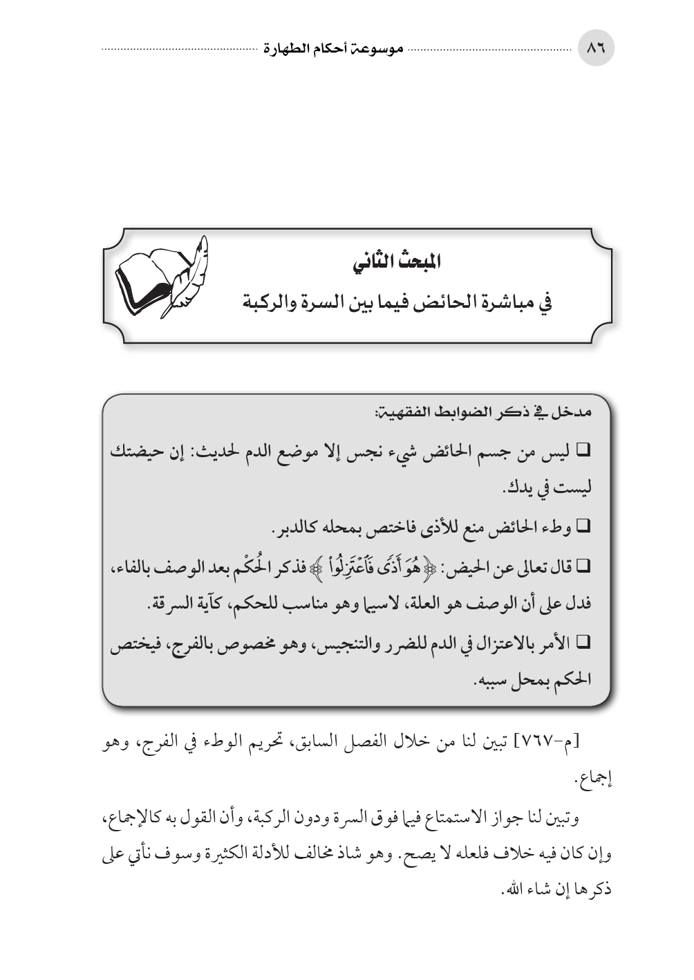 المبحث الثاني في مباشرة الحائض فيما بين السرة والركبة