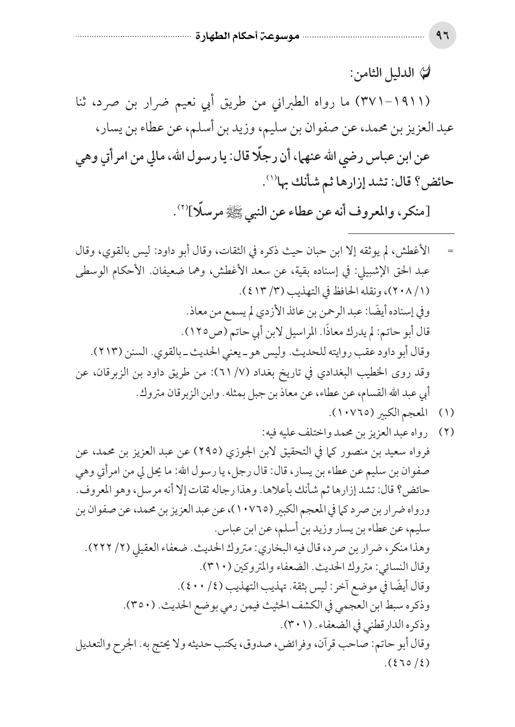 (١٩١١ - ٣٧١) ما رواه الطبراني من طريق أبي نعيم ضرار بن صرد، ثنا عبد العزيز بن محمد، عن صفوان بن سليم، وزيد بن أسلم، عن عطاء بن يسار،