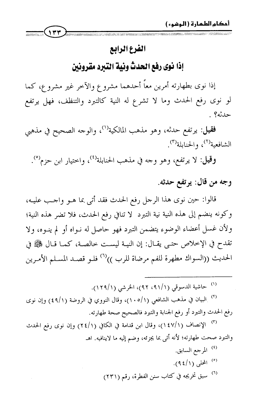 (¬١) حاشية الدسوقي (١/ ٩١، ٩٢)، الخرشي (١/ ١٢٩).