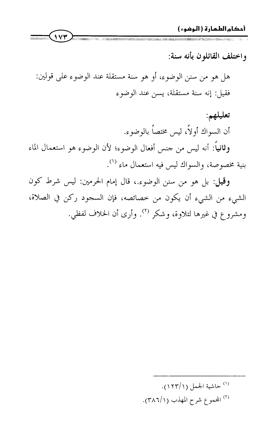(¬٢) المجموع شرح المهذب (١/ ٣٨٦).