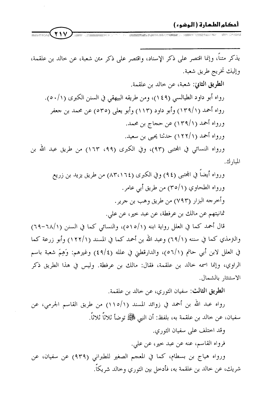 الطريق الثالث: سفيان الثوري، عن خالد بن علقمة.