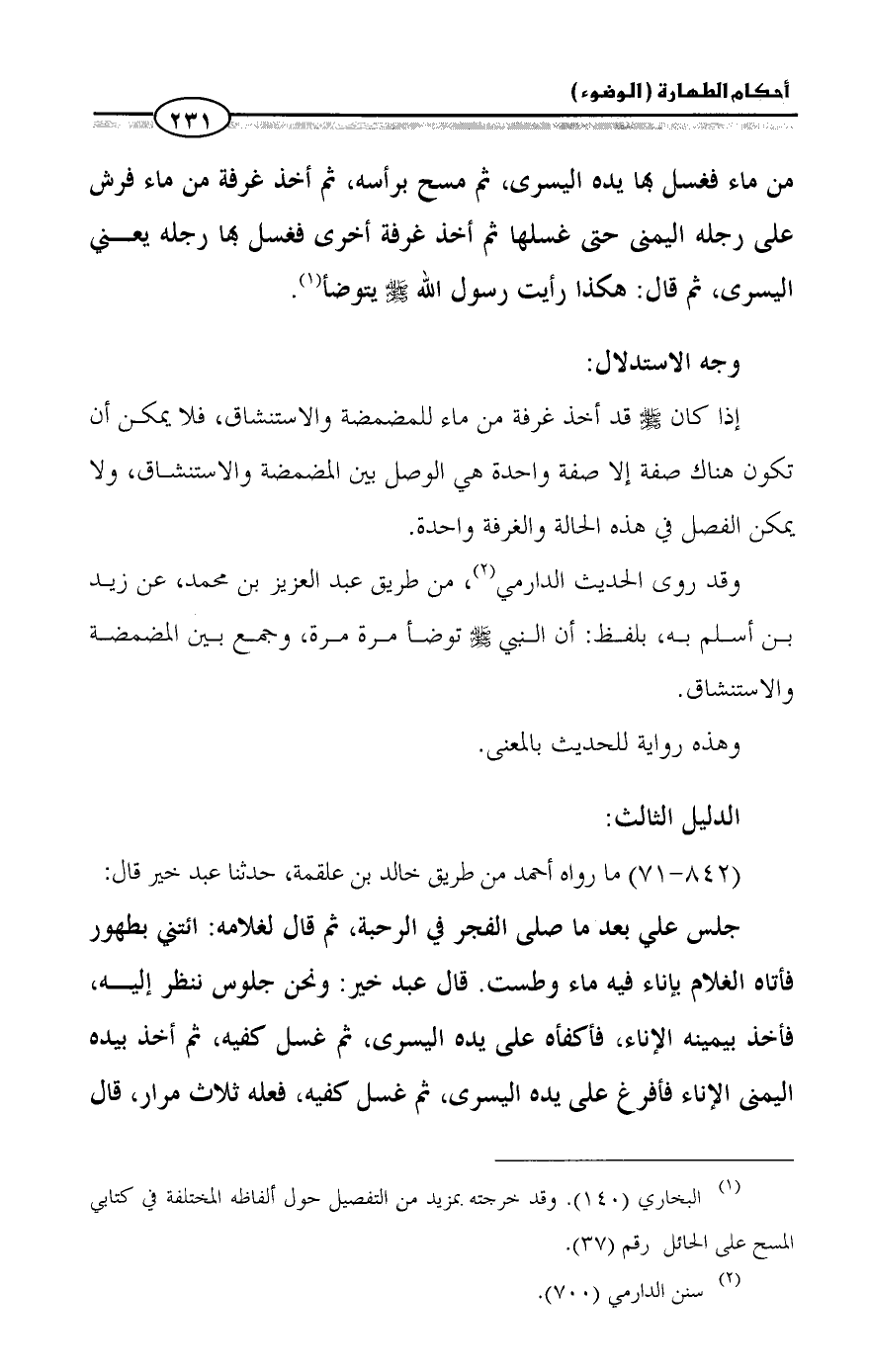 (¬١) البخاري (١٤٠). وقد خرجته بمزيد من التفصيل حول ألفاظه المختلفة في كتابي المسح على الحائل رقم (٣٧).