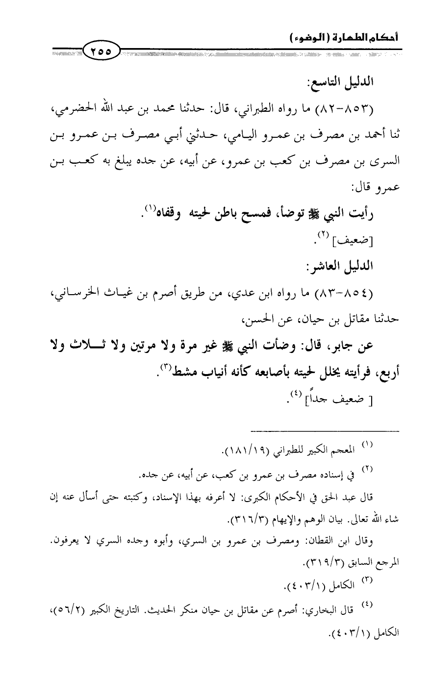 (٨٥٣ - ٨٢) ما رواه الطبراني، قال: حدثنا محمد بن عبد الله الحضرمي، ثنا أحمد بن مصرف بن عمرو اليامي، حدثني أبي مصرف بن عمرو بن السرى بن مصرف بن كعب بن عمرو، عن أبيه، عن جده يبلغ به كعب بن عمرو قال: