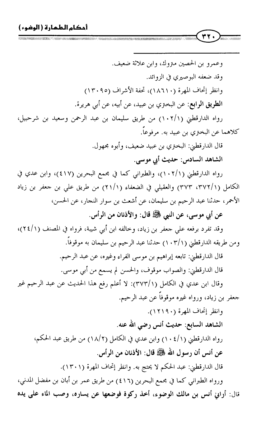 ورواه الطبراني كما في مجمع البحرين (٤١٦) من طريق عمر بن أبان بن مفضل المدني، قال: أراني أنس بن مالك الوضوء، أخذ ركوة فوضعها عن يساره، وصب الماء على يده =