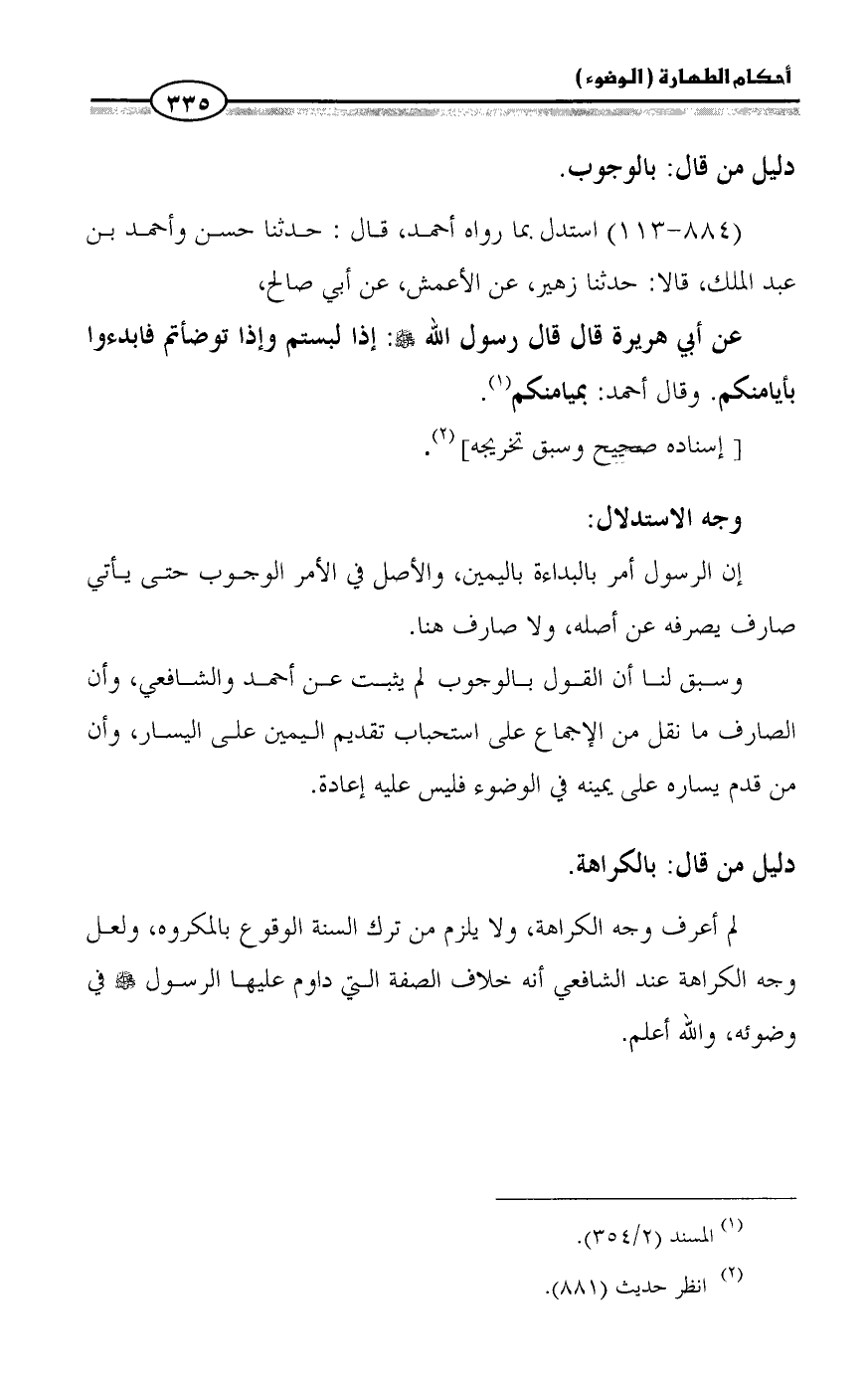 (٨٨٤ - ١١٣) استدل بما رواه أحمد، قال: حدثنا حسن وأحمد بن عبد الملك، قالا: حدثنا زهير، عن الأعمش، عن أبي صالح،