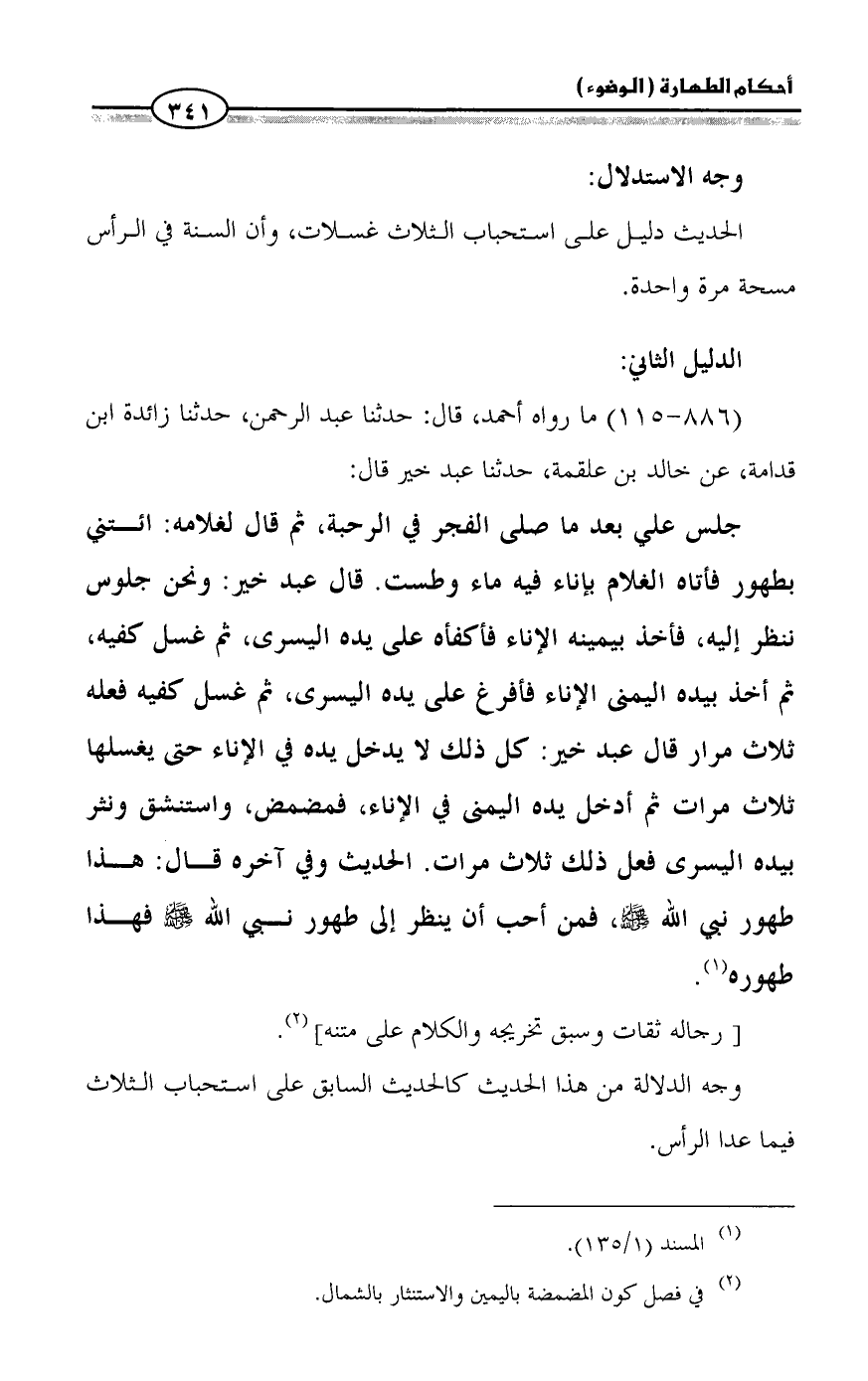 وجه الدلالة من هذا الحديث كالحديث السابق على استحباب الثلاث فيما عدا الرأس.