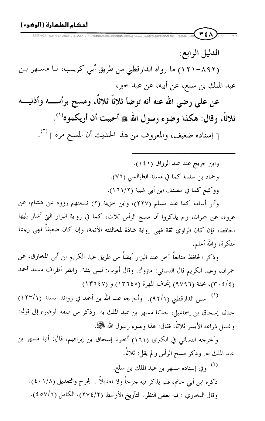 (٨٩٢ - ١٢١) ما رواه الدارقطني من طريق أبي كريب، نا مسهر بن عبد الملك بن سلع، عن أبيه، عن عبد خير،