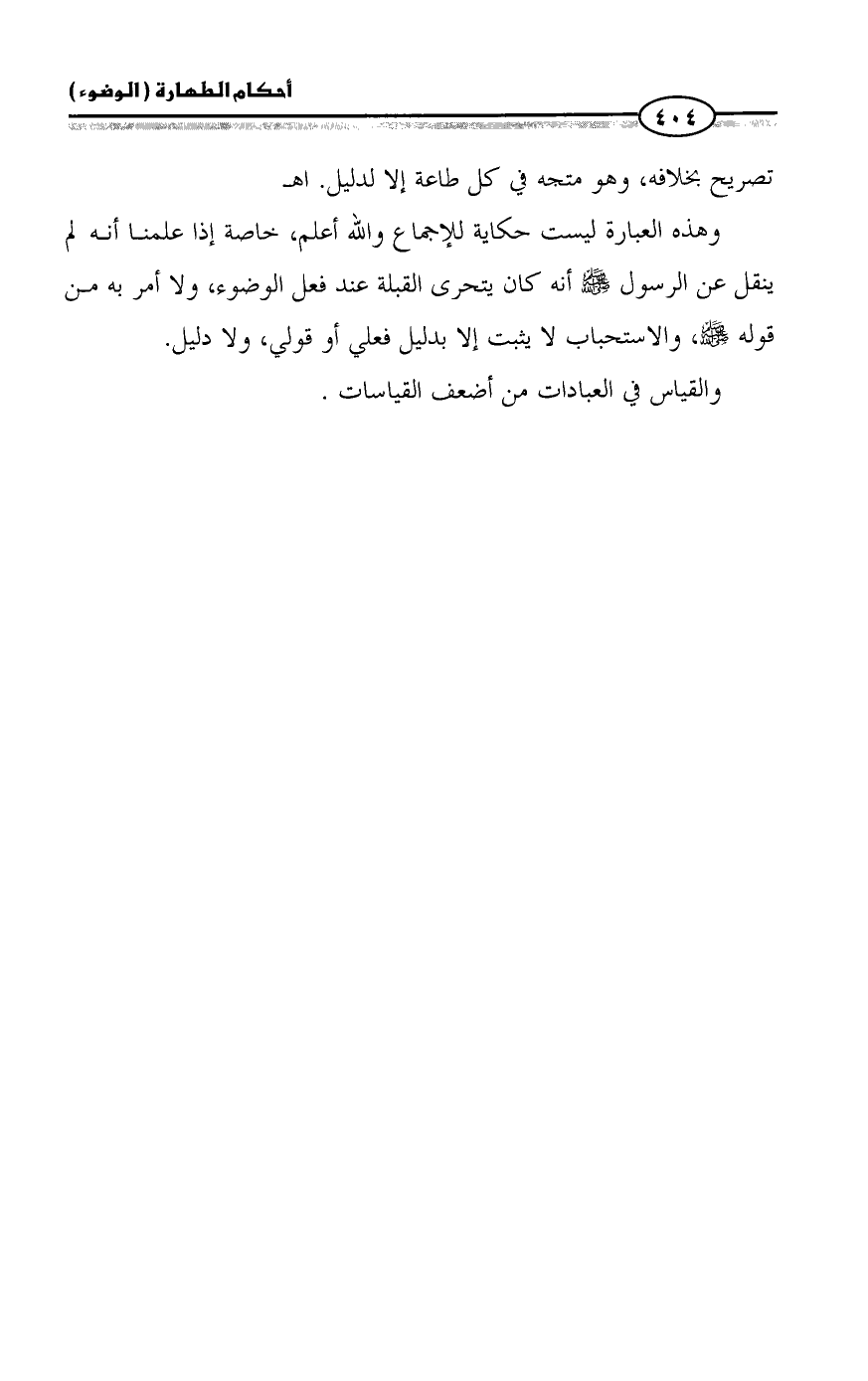 وهذه العبارة ليست حكاية للإجماع والله أعلم، خاصة إذا علمنا أنه لم ينقل عن الرسول - صلى الله عليه وسلم - أنه كان يتحرى القبلة عند فعل الوضوء، ولا أمر به من قوله - صلى الله عليه وسلم -، والاستحباب لا يثبت إلا بدليل فعلي أو قولي، ولا دليل.