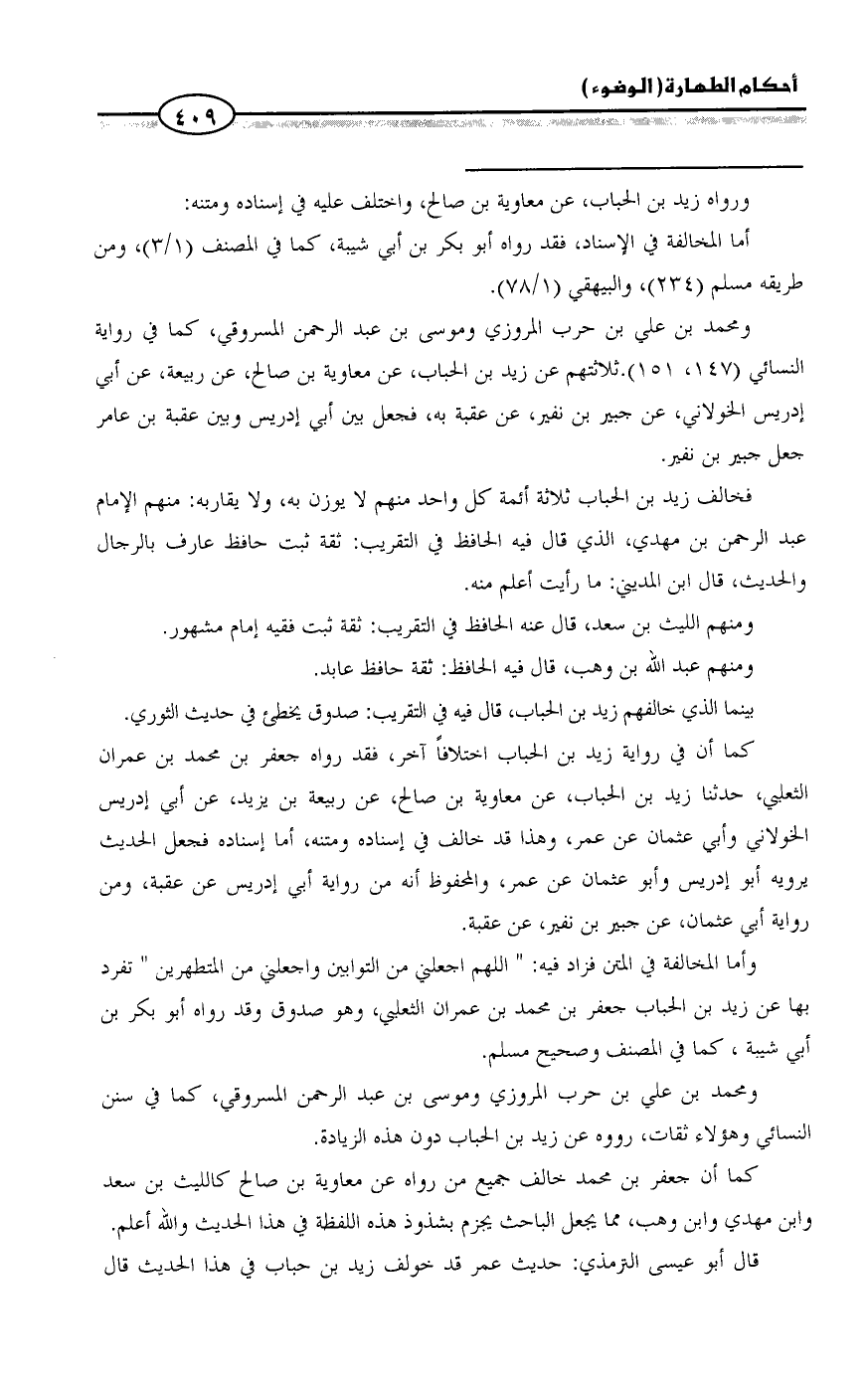 وأما المخالفة في المتن فزاد فيه: " اللهم اجعلني من التوابين واجعلني من المتطهرين " تفرد بها عن زيد بن الحباب جعفر بن محمد بن عمران الثعلبي، وهو صدوق وقد رواه أبو بكر بن أبي شيبة، كما في المصنف وصحيح مسلم.
