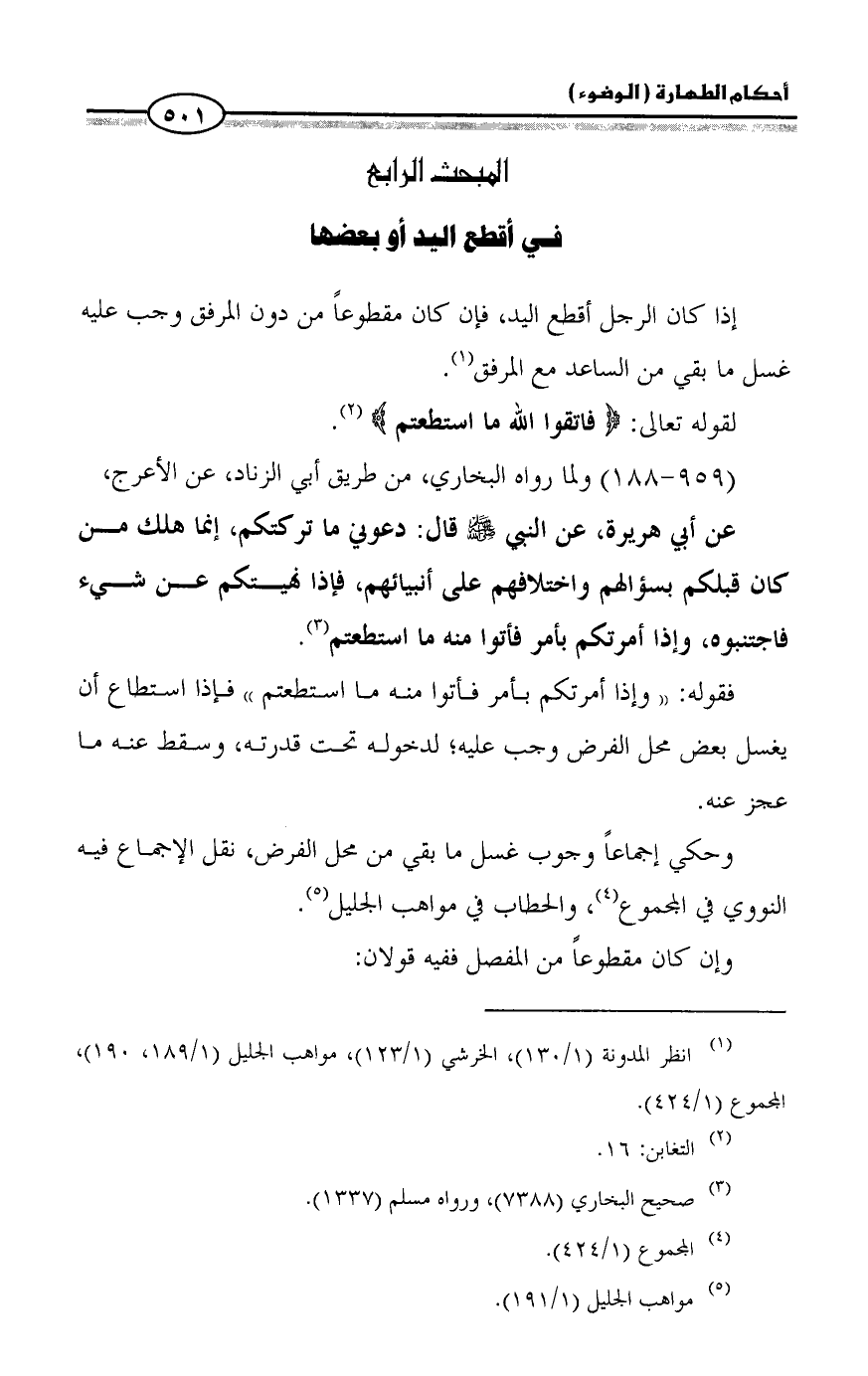 (¬1) انظر المدونة (1/ 130)، الخرشي (1/ 123)، مواهب الجليل (1/ 189، 190)، المجموع (1/ 424).