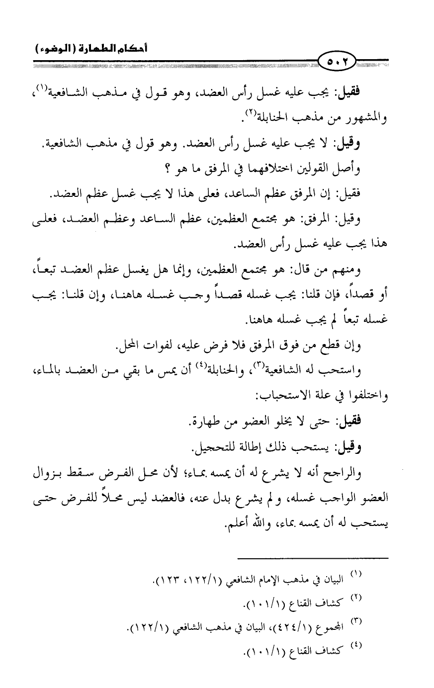 وقيل: لا يجب عليه غسل رأس العضد. وهو قول في مذهب الشافعية.
