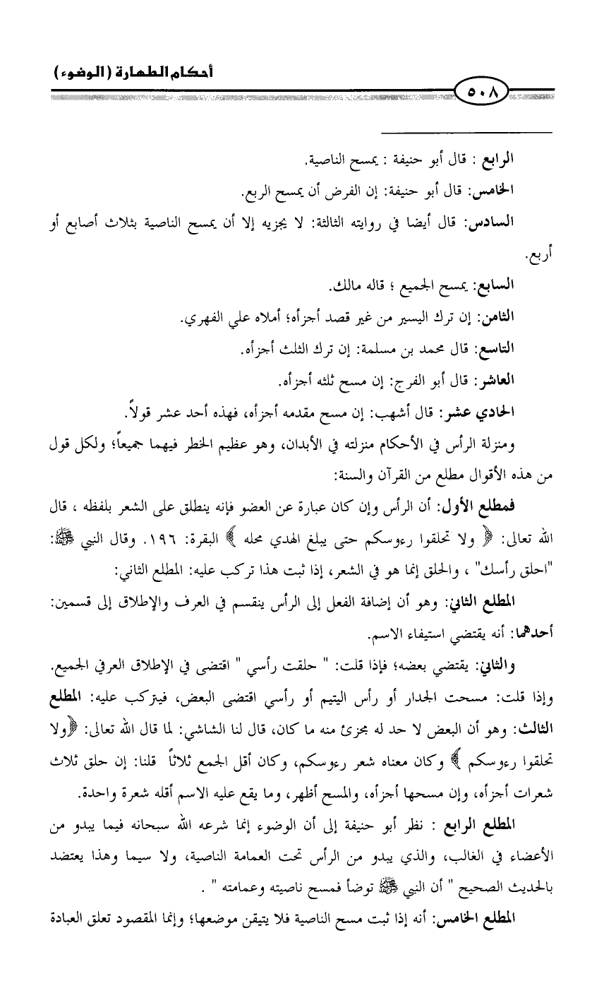 المطلع الخامس: أنه إذا ثبت مسح الناصية فلا يتيقن موضعها; وإنما المقصود تعلق العبادة =