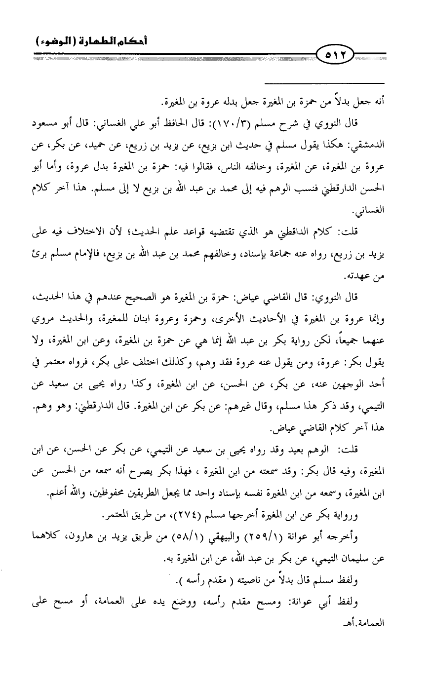 قال النووي في شرح مسلم (3/ 170): قال الحافظ أبو علي الغساني: قال أبو مسعود الدمشقي: هكذا يقول مسلم في حديث ابن بزيع، عن يزيد بن زريع، عن حميد، عن بكر، عن عروة بن المغيرة، عن المغيرة، وخالفه الناس، فقالوا فيه: حمزة بن المغيرة بدل عروة، وأما أبو الحسن الدارقطني فنسب الوهم فيه إلى محمد بن عبد الله بن بزيع لا إلى مسلم. هذا آخر كلام الغساني.