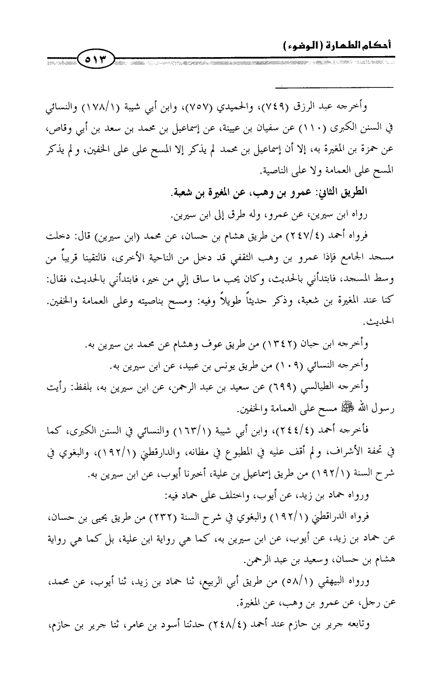 ورواه البيهقي (1/ 58) من طريق أبي الربيع، ثنا حماد بن زيد، ثنا أيوب، عن محمد، عن رجل، عن عمرو بن وهب، عن المغيرة.