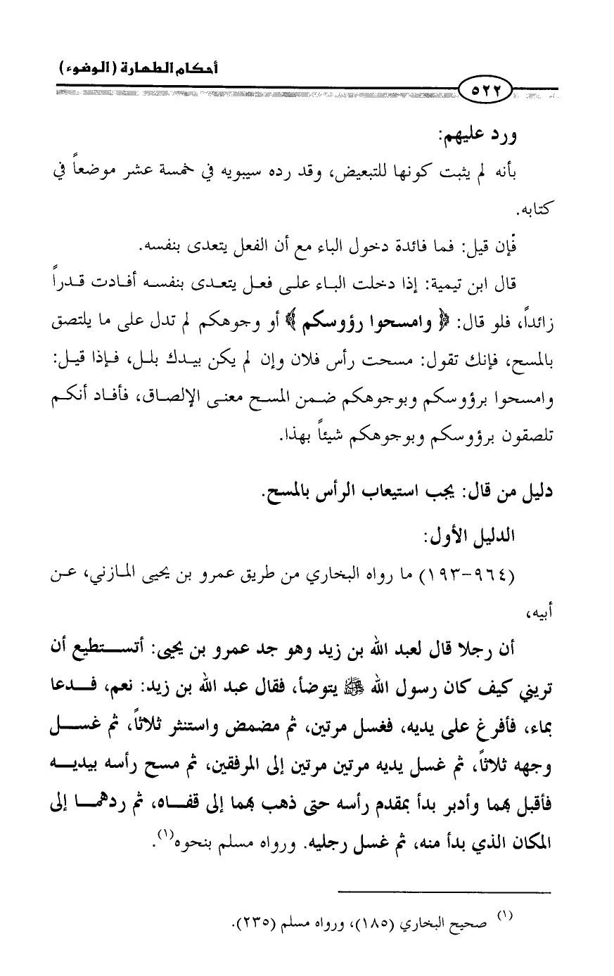 دليل من قال: يجب استيعاب الرأس بالمسح.
