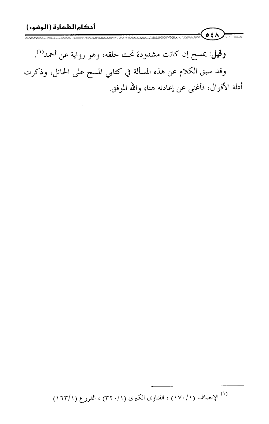 (¬1) الإنصاف (1/ 170)، الفتاوى الكبرى (1/ 320)، الفروع (1/ 163).