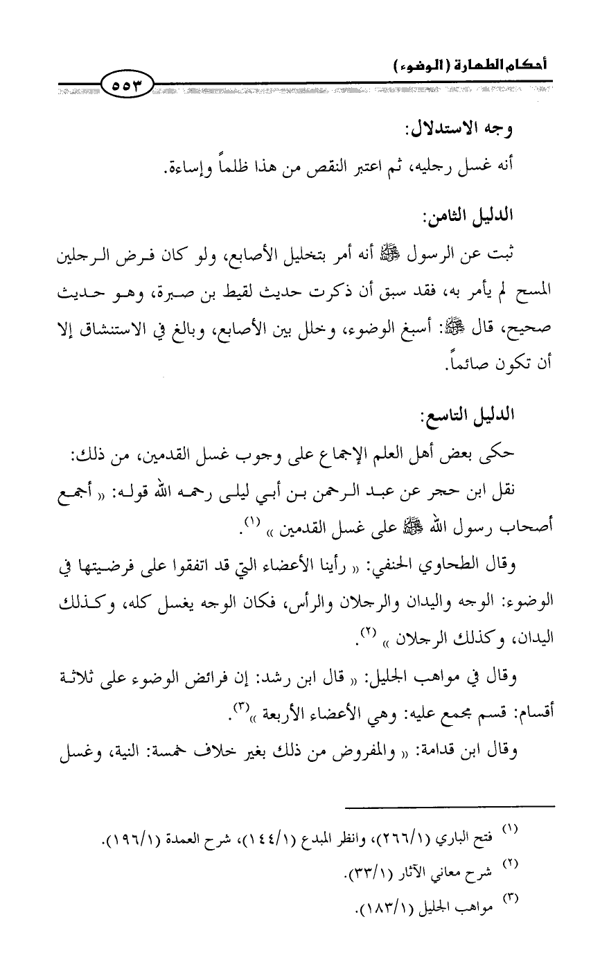 وقال في مواهب الجليل: «قال ابن رشد: إن فرائض الوضوء على ثلاثة أقسام: قسم مجمع عليه: وهي الأعضاء الأربعة» (¬3).