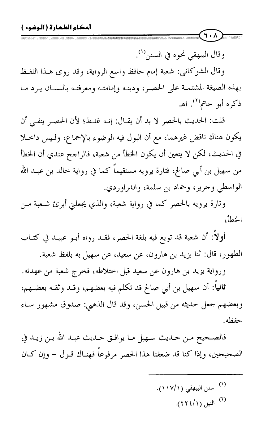 فالصحيح من حديث سهيل ما يوافق حديث عبد الله بن زيد في الصحيحين، وإذا كنا قد ضعفنا هذا الحصر مرفوعاً فهناك قول - وإن كان