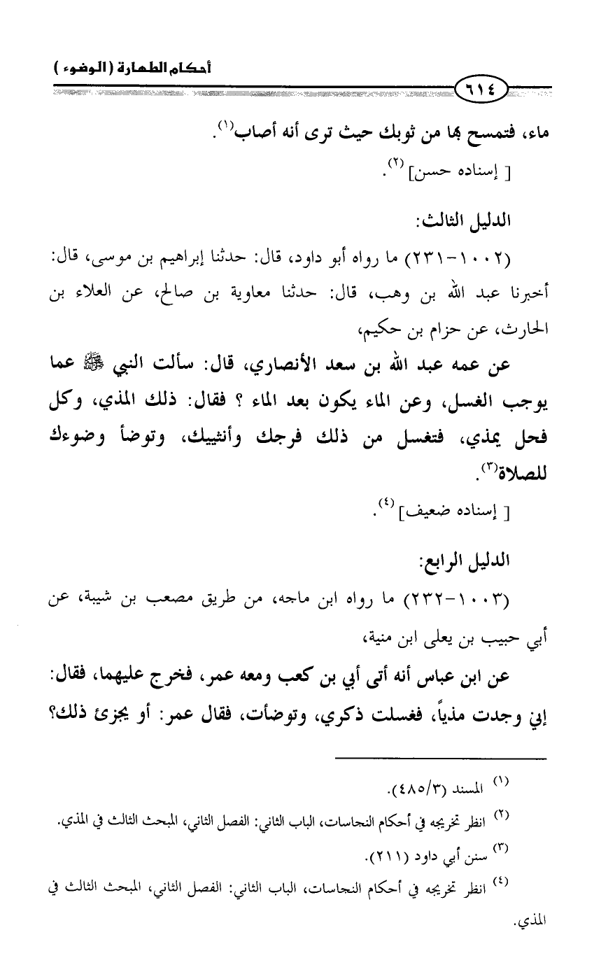 (¬4) انظر تخريجه في أحكام النجاسات، الباب الثاني: الفصل الثاني، المبحث الثالث في المذي.