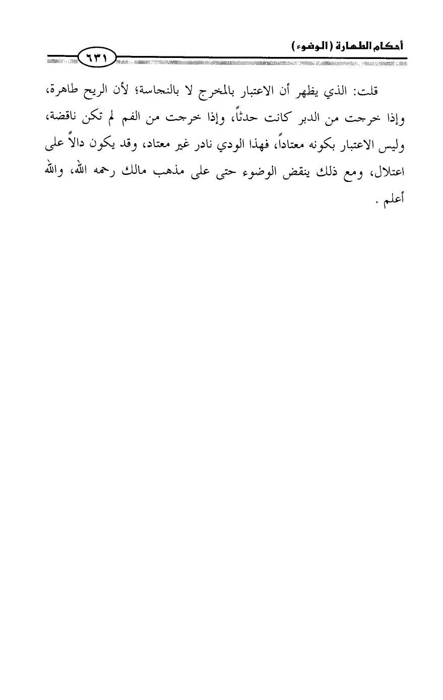 قلت: الذي يظهر أن الاعتبار بالمخرج لا بالنجاسة؛ لأن الريح طاهرة، وإذا خرجت من الدبر كانت حدثاً، وإذا خرجت من الفم لم تكن ناقضة، وليس الاعتبار بكونه معتاداً، فهذا الودي نادر غير معتاد، وقد يكون دالاً على اعتلال، ومع ذلك ينقض الوضوء حتى على مذهب مالك رحمه الله، والله أعلم.