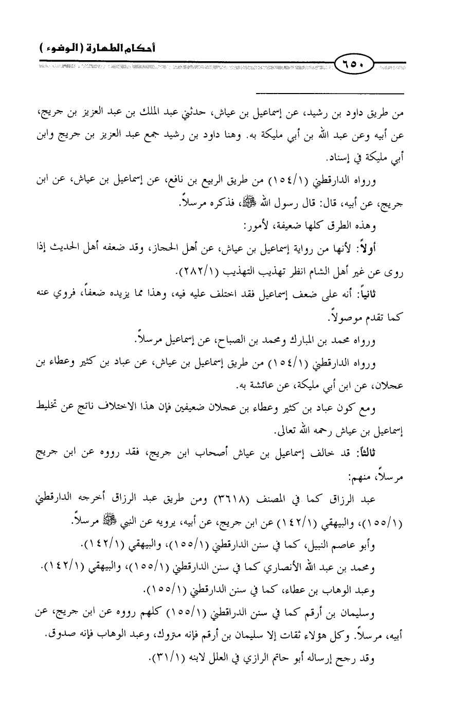 وسليمان بن أرقم كما في سنن الدراقطني (1/ 155) كلهم رووه عن ابن جريج، عن أبيه، مرسلاً. وكل هؤلاء ثقات إلا سليمان بن أرقم فإنه متروك، وعبد الوهاب فإنه صدوق.