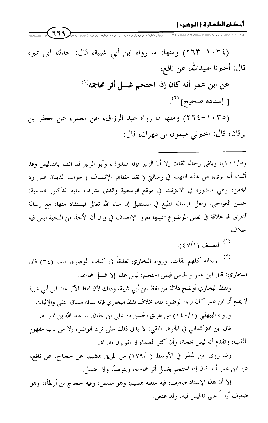 (¬2) رجاله كلهم ثقات، ورواه البخاري تعليقاً في كتاب الوضوء، باب (34) قال البخاري: قال ابن عمر والحسن فيمن احتجم: ليس عليه إلا غسل محاجمه.