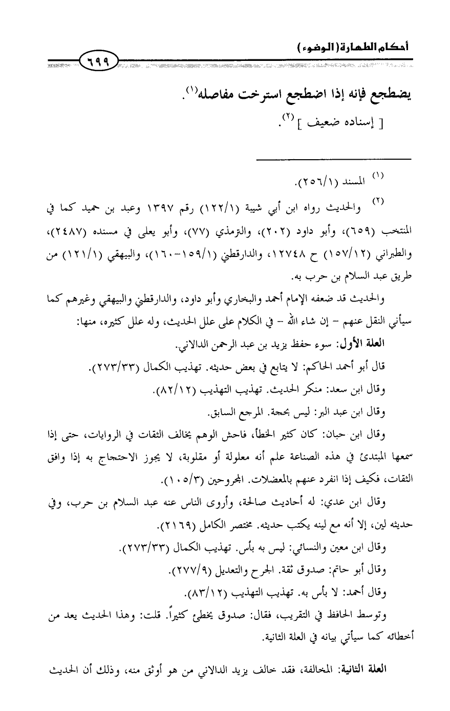العلة الأول: سوء حفظ يزيد بن عبد الرحمن الدالاني.