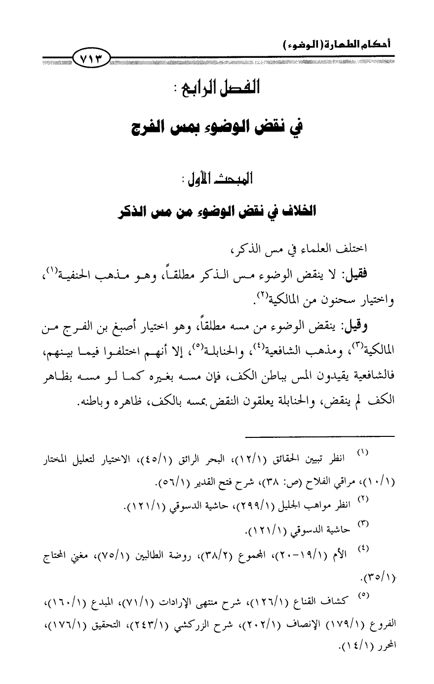 (¬5) كشاف القناع (1/ 126)، شرح منتهى الإرادات (1/ 71)، المبدع (1/ 160)، الفروع (1/ 179) الإنصاف (1/ 202)، شرح الزركشي (1/ 243)، التحقيق (1/ 176)، المحرر (1/ 14).